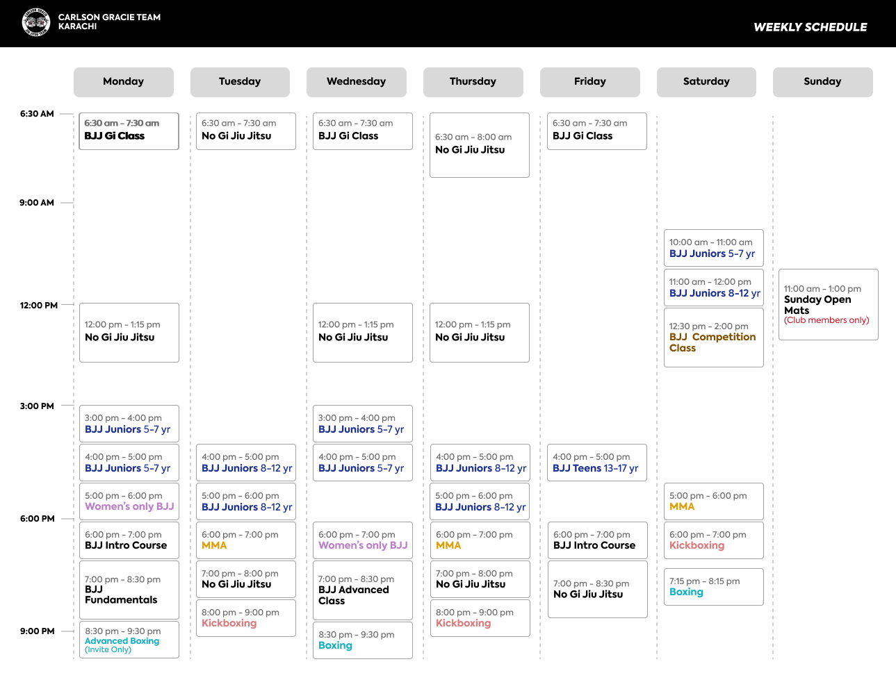 Sunday Open Mats (Club Members Only) 11:00 am 1:00 pm
